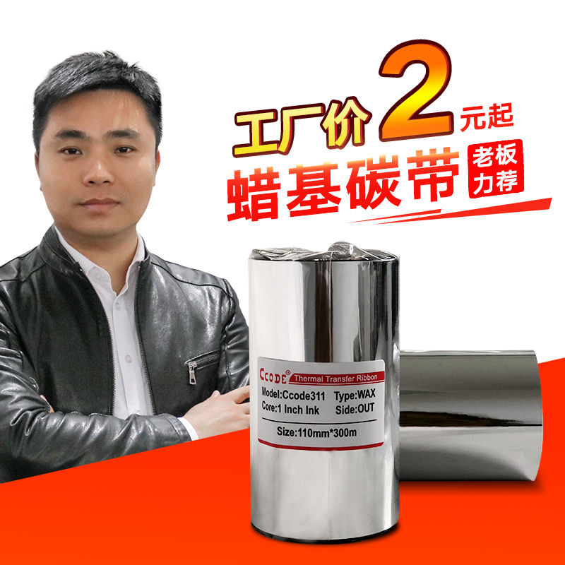 Ccode311 wax-based ribbon 50~110mm 300m tsc ribbon roll coated paper label printer ribbon