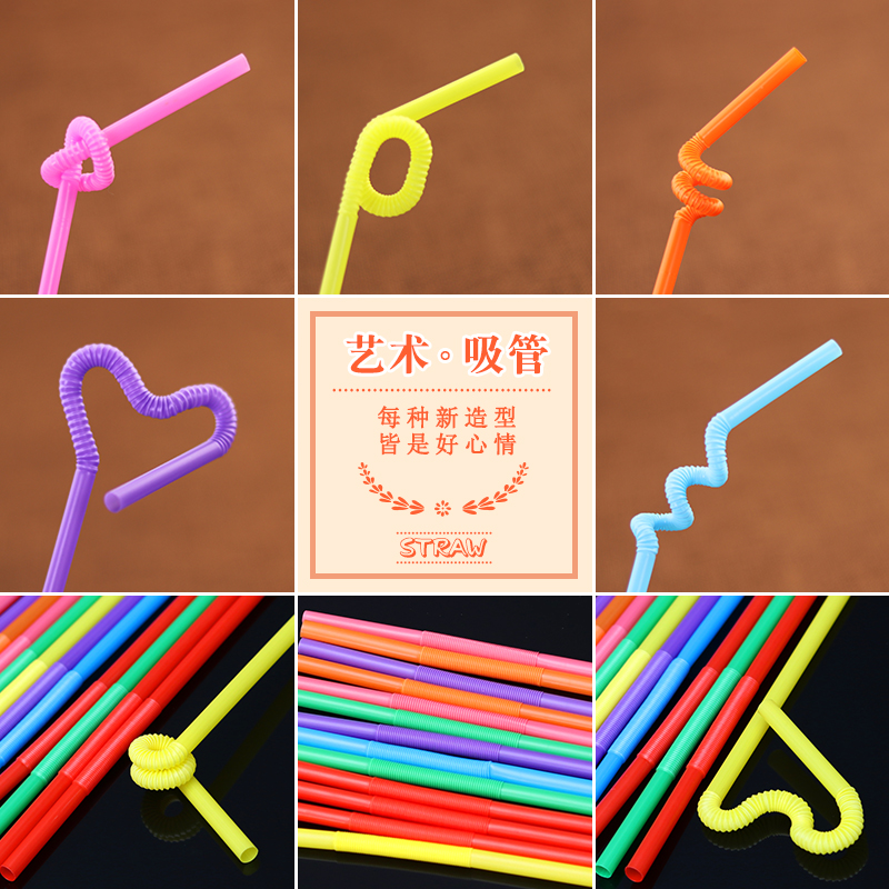 Disposable Color Art Straws Drink Juice Lengthened Milk Tea Straw Bending Creative Styling Straws