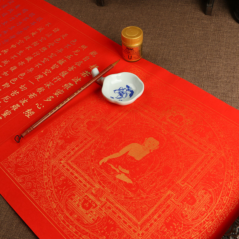 Heart Sutra four-color small script red copybook brush calligraphy copy beginner practice hand copy Buddhist scripture pen and ink plate set