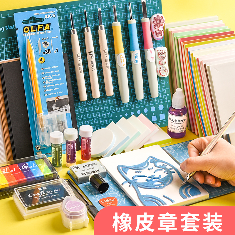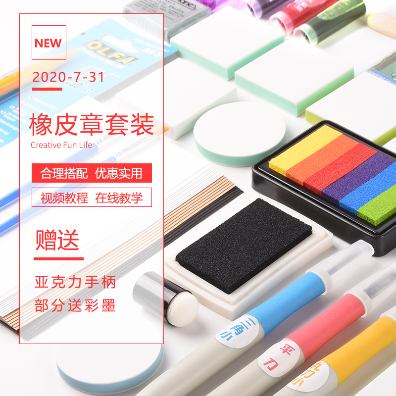 Impression Time Rubber Stamp Novice Set Student Handmade Print Engraving Set Zero Basic Send Full Video Tutorial Uncoverable Rubber Stamp Rubber Brick Material Pack Rubber Stamp Material