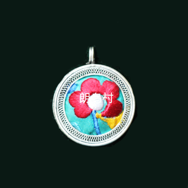 Guizhou l Langu village silver decorated shop Miao silver inlaid pure hand embroidery ethnic wind pendant literature and art little fresh
