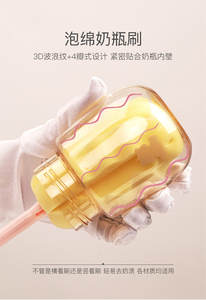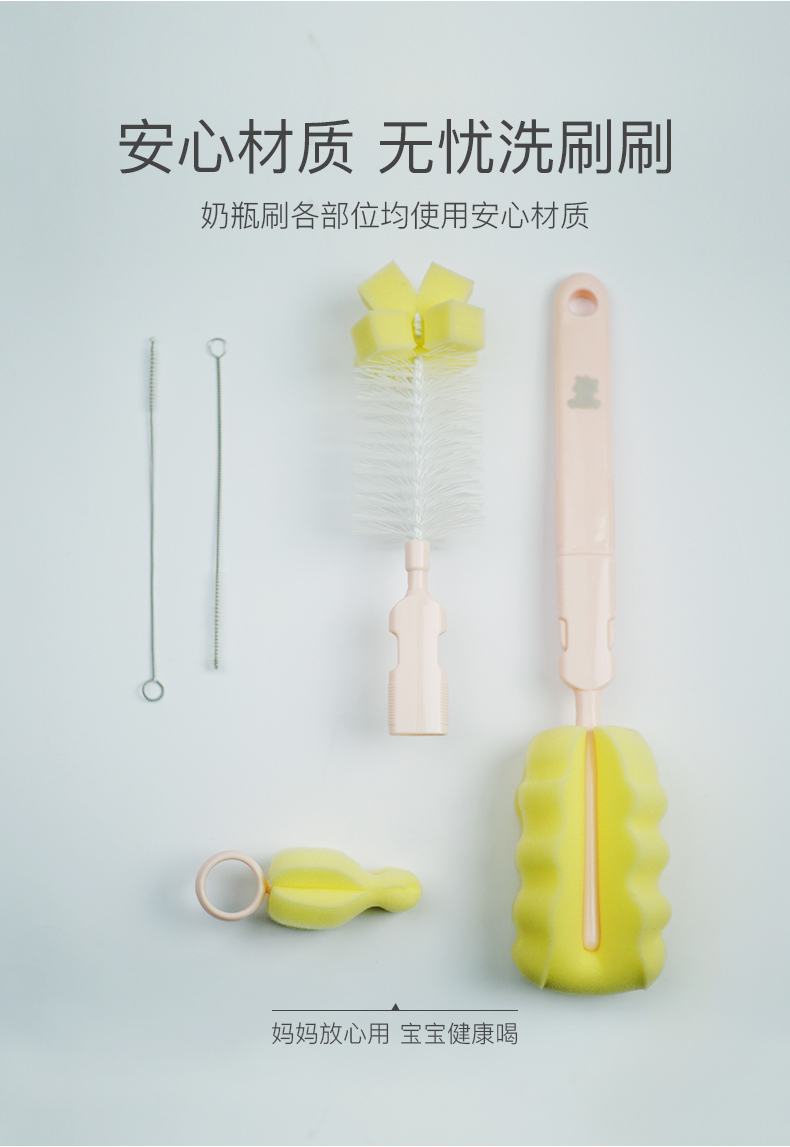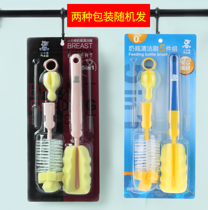 Small white bear bottle brush feeding bottle cleaning brush with sponge brush feeding bottle brushed pacifier brushed straw brush 5 pieces set 09238