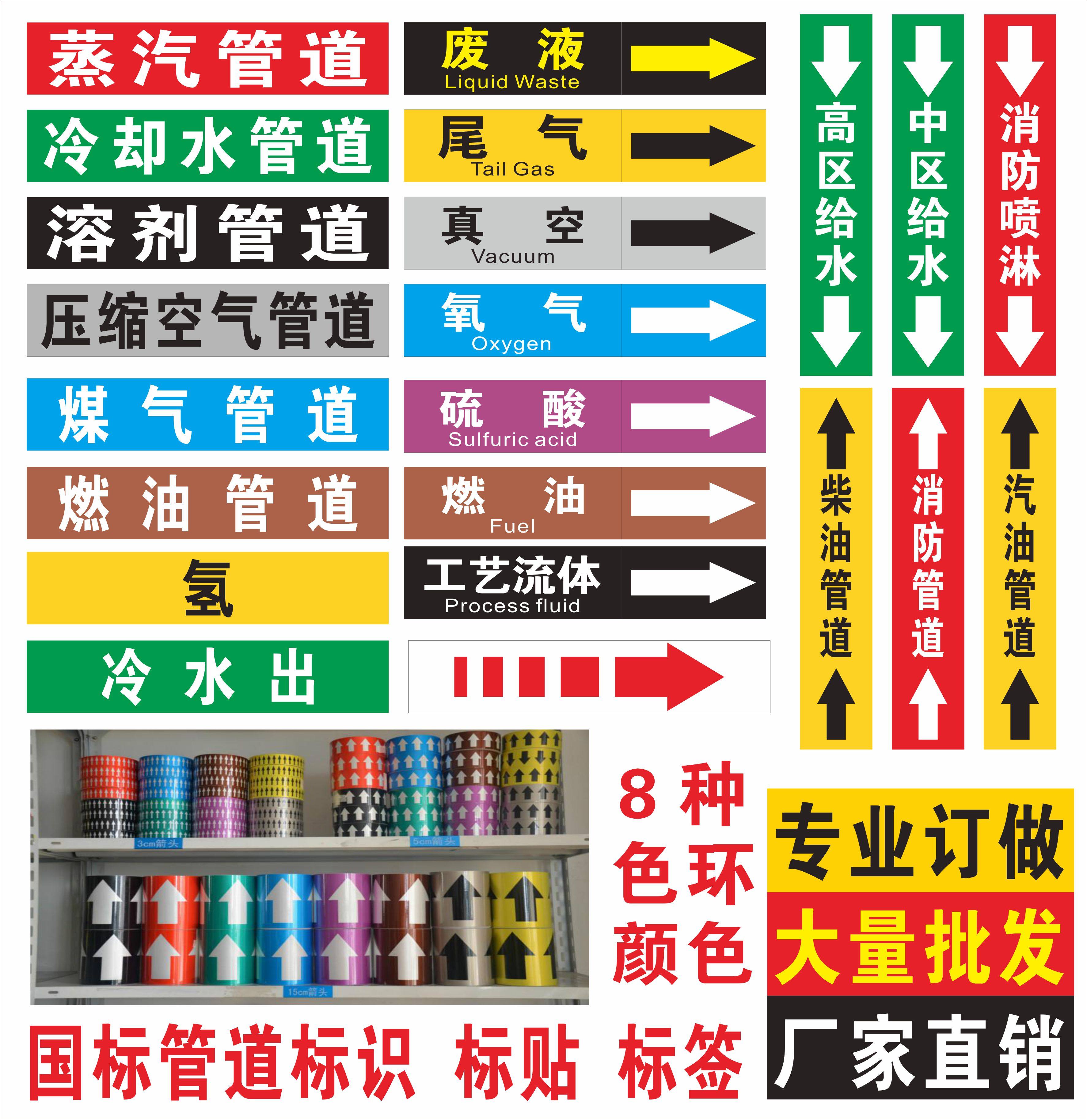 Fire piping logo sticker compressed air pipe marking hot water circulating water pipe colour ring arrowhead flow to the mark