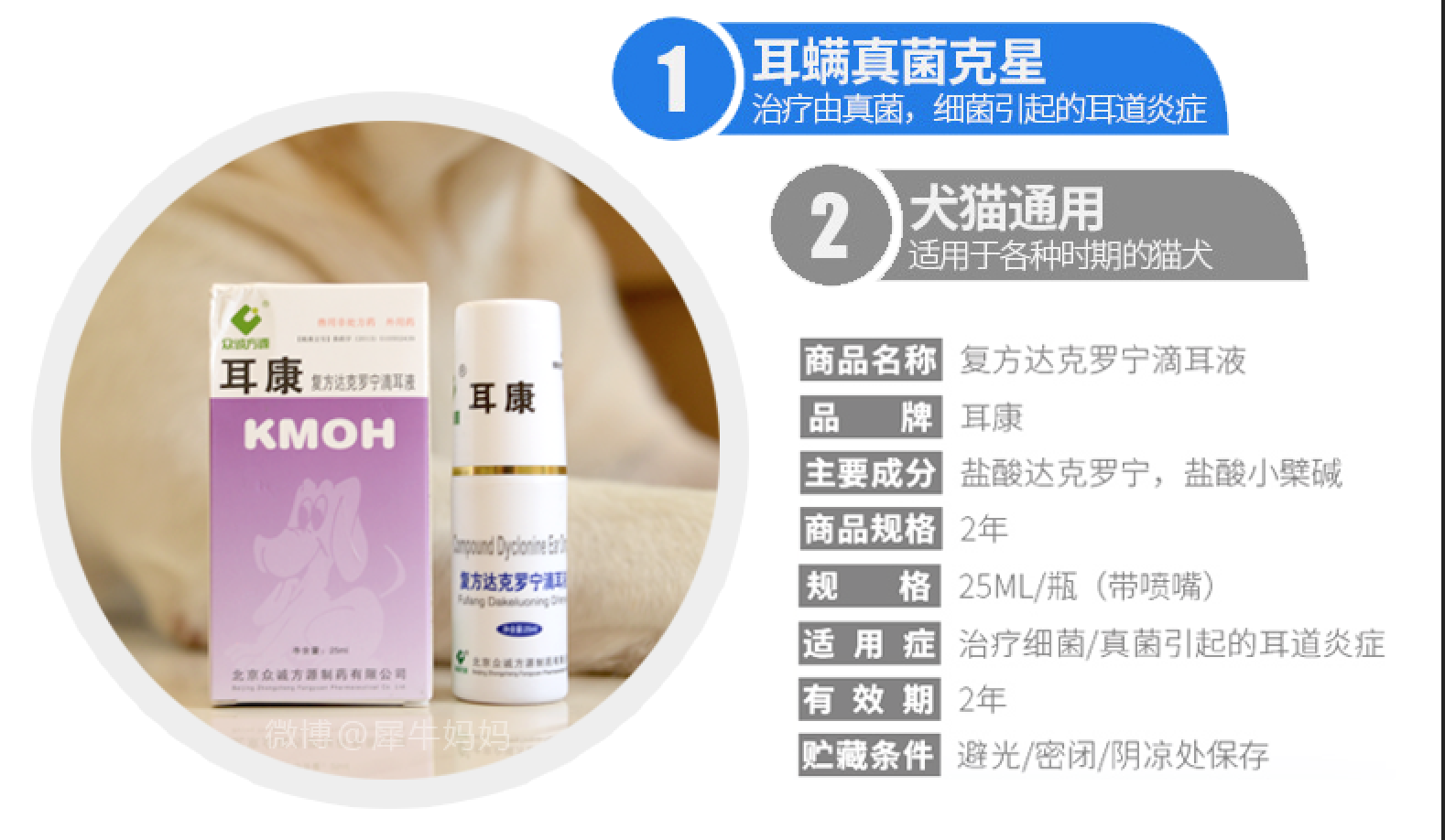 Rhino self - medication Ear Kang Huang - drop ear - ear - tis fungal pet cat and dog ear wash ear water