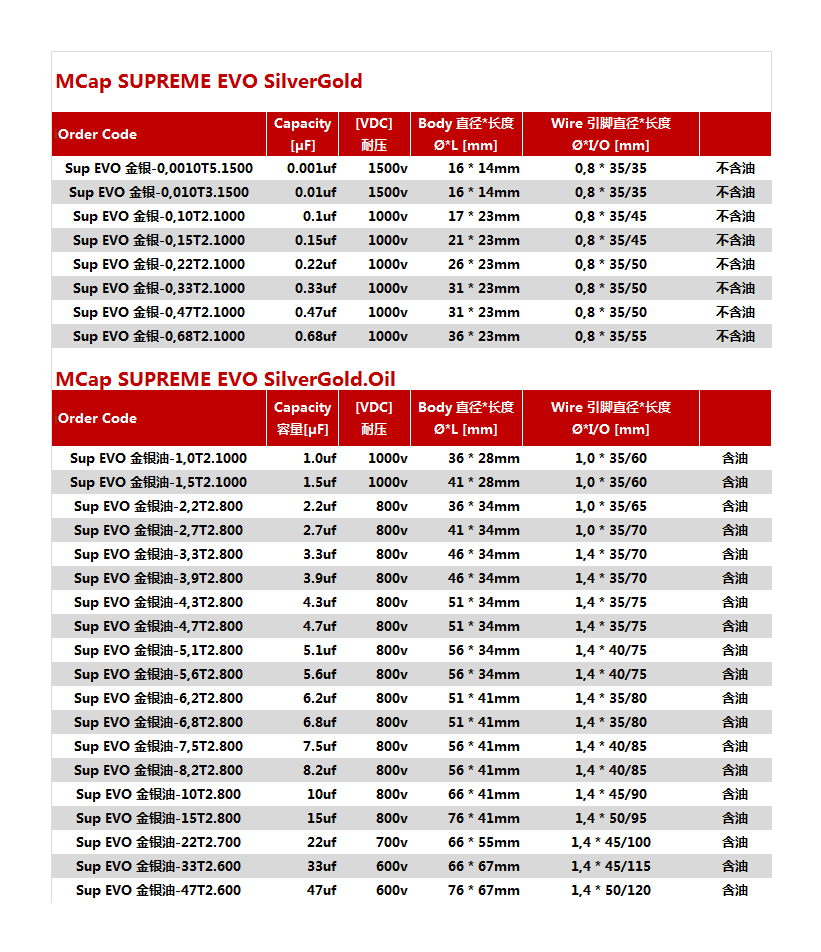 Germany Mundorf Mcap Supreme EVO oil gold and silver oil-immersed coupling crossover capacitor