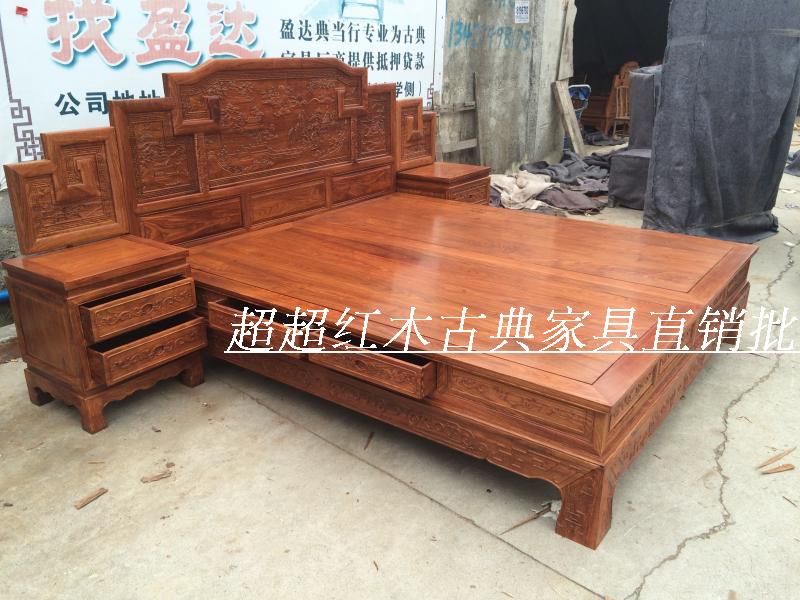 Hot Pin Red Wood Furniture with high bed Flowers Pear Wood Sleeping Bed Chinese Imitation Antique Hedgehog Purple Sandalwood Solid Wood Double Bed Wood Bed