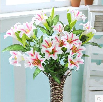 Simulation PU perfume lily flower dry flower floor flower high branch flower fake flower silk flower 5 heads 3 flowers 2 buds