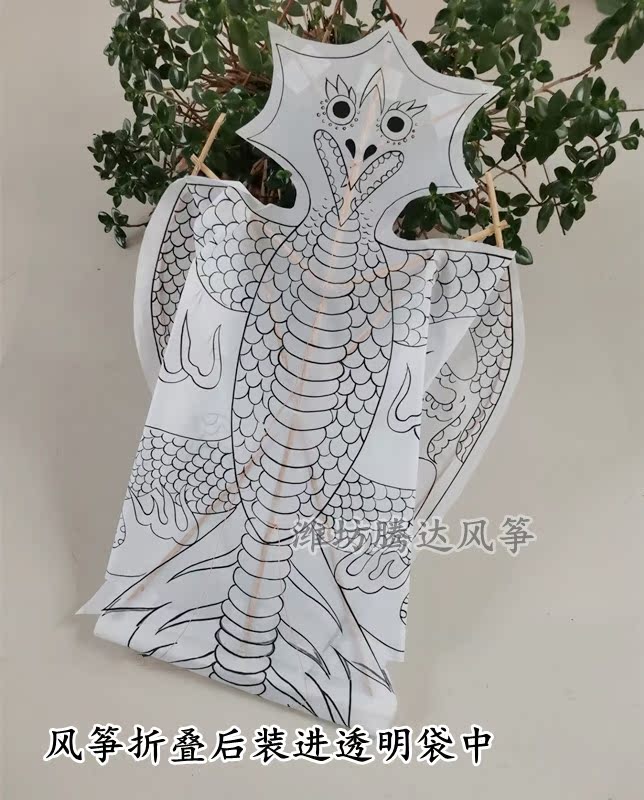 DIY Painted Bamboo Skeleton Winged Dragon Line Kite Dinosaur Pattern Classroom Teaching Homework Display Active Semi-finished Products