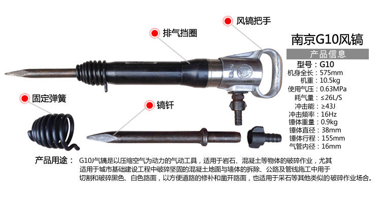 Nanjing engineering brand G10 wind pickaxe gas shovel cement crusher pneumatic rock drill wind pickaxe accessories
