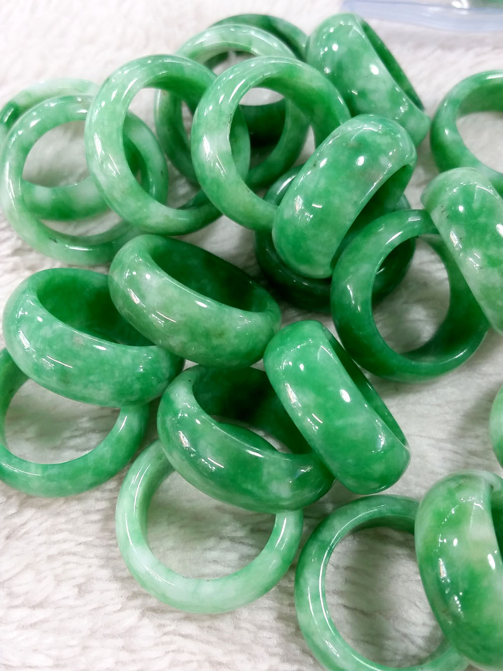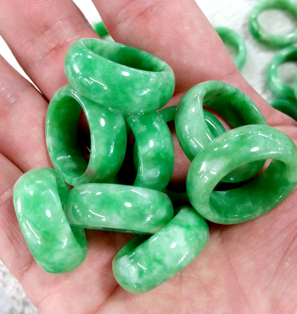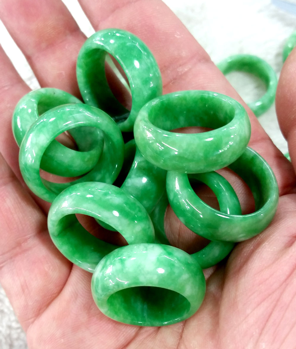 Hot sale Myanmar dry green iron dragon raw natural full green emerald jade wrench finger ring ring male and female