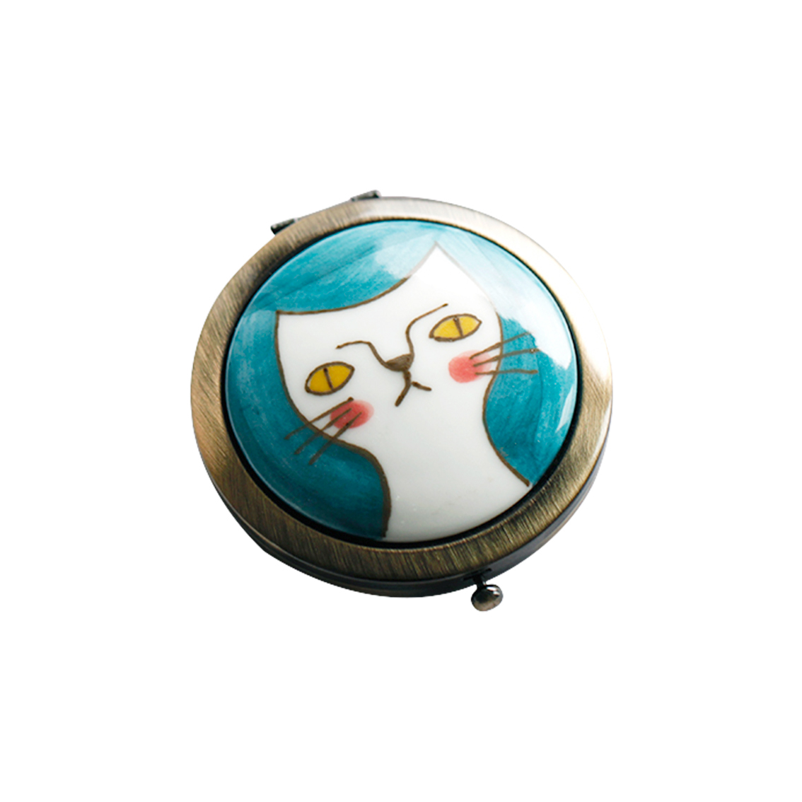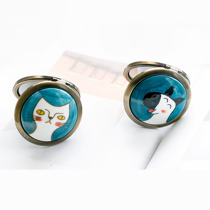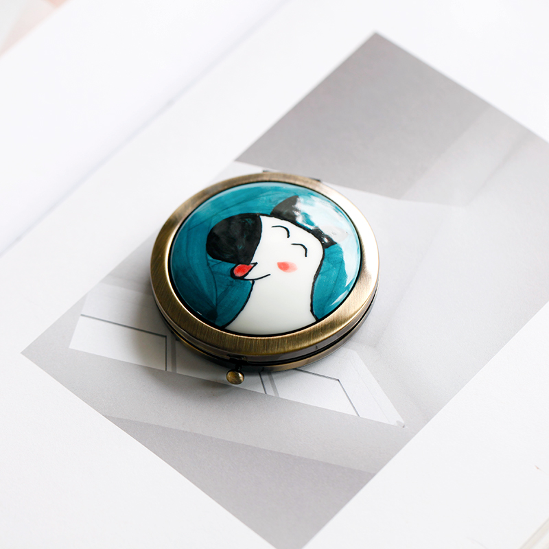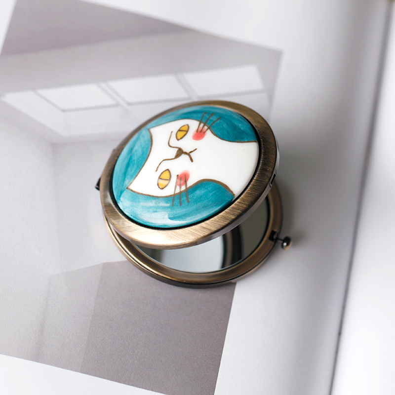 Original hand-made ceramic cartoon exquisite small mirror female cute portable makeup mirror foldable high-end makeup mirror