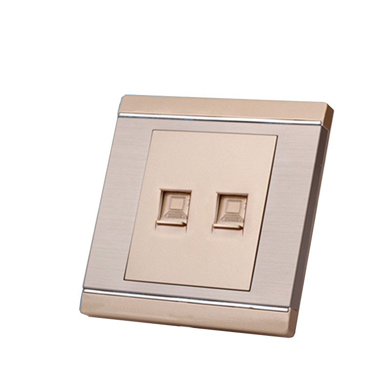 Type 86 switch socket panel M8 champagne metal pull-screen route dual network computer information socket panel