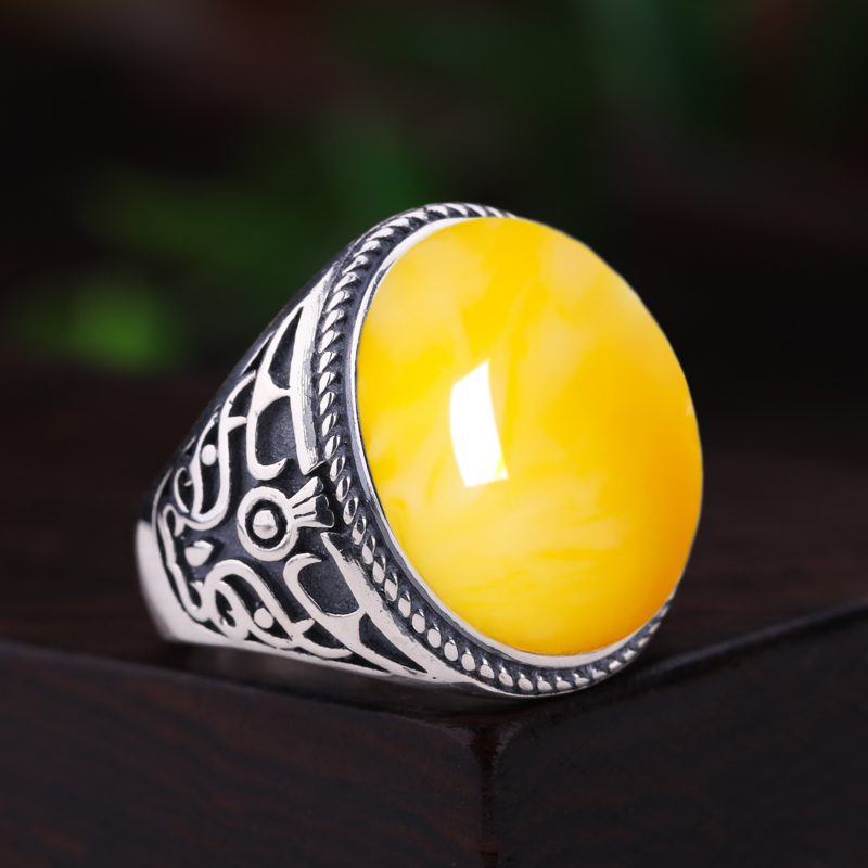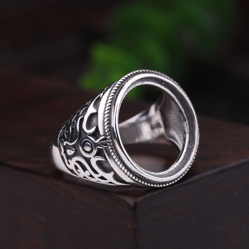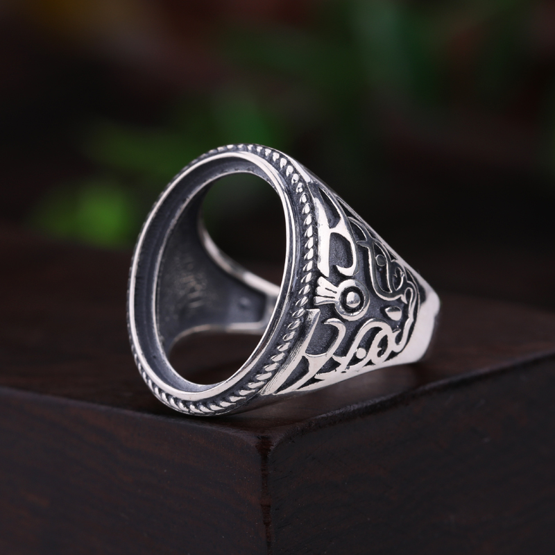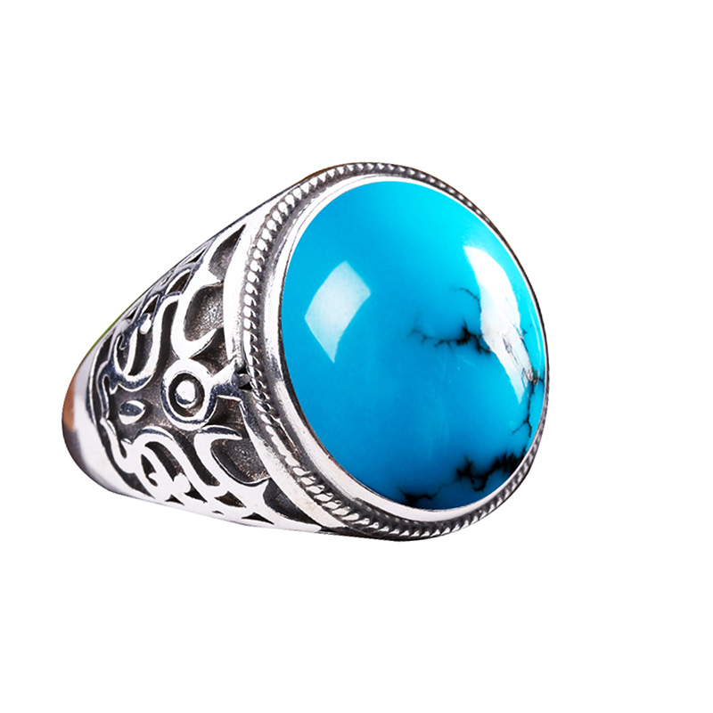 S925 sterling silver ring with undue turquoise wax opening vintage men's band 13*17 11*13
