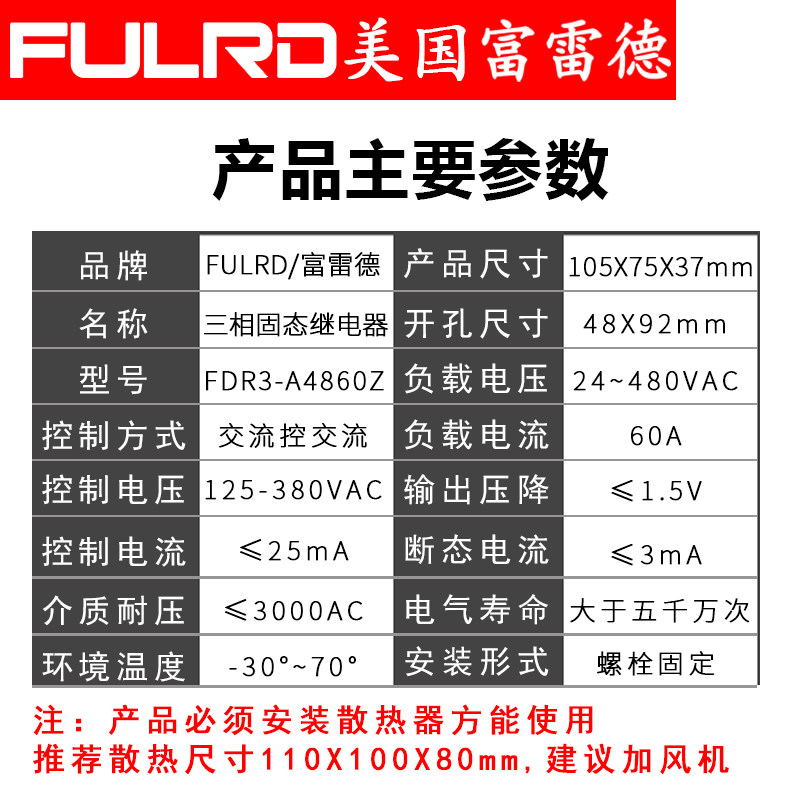 Three-phase AC Solid State Relay 60A SSR-3 AC Control AC 220VAC AA FDR3-A4860Z