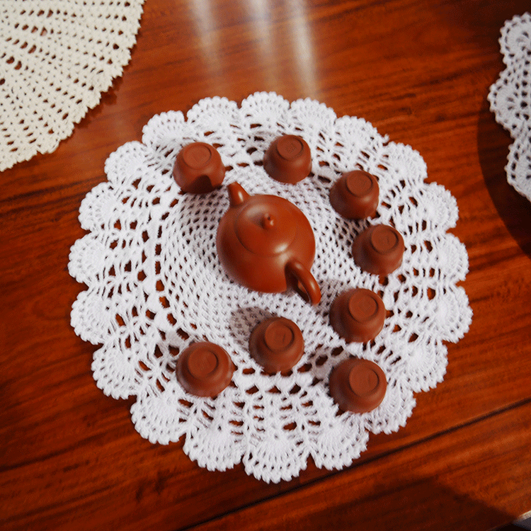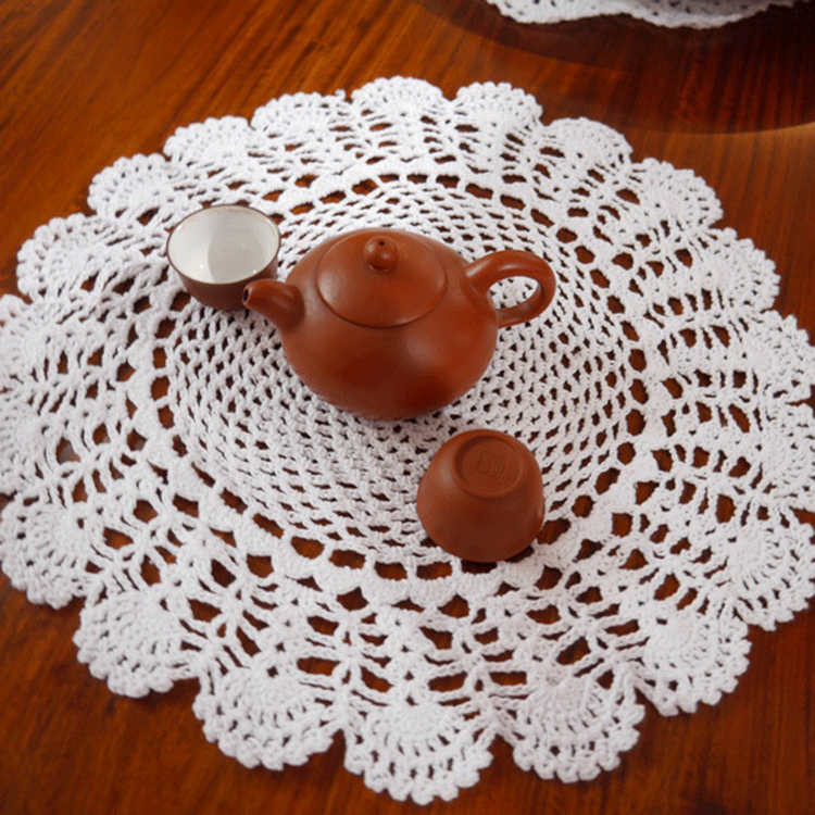 I love my home handmade crochet hook flower cotton lace hollow weave round placemat decorative cushion plate cushion