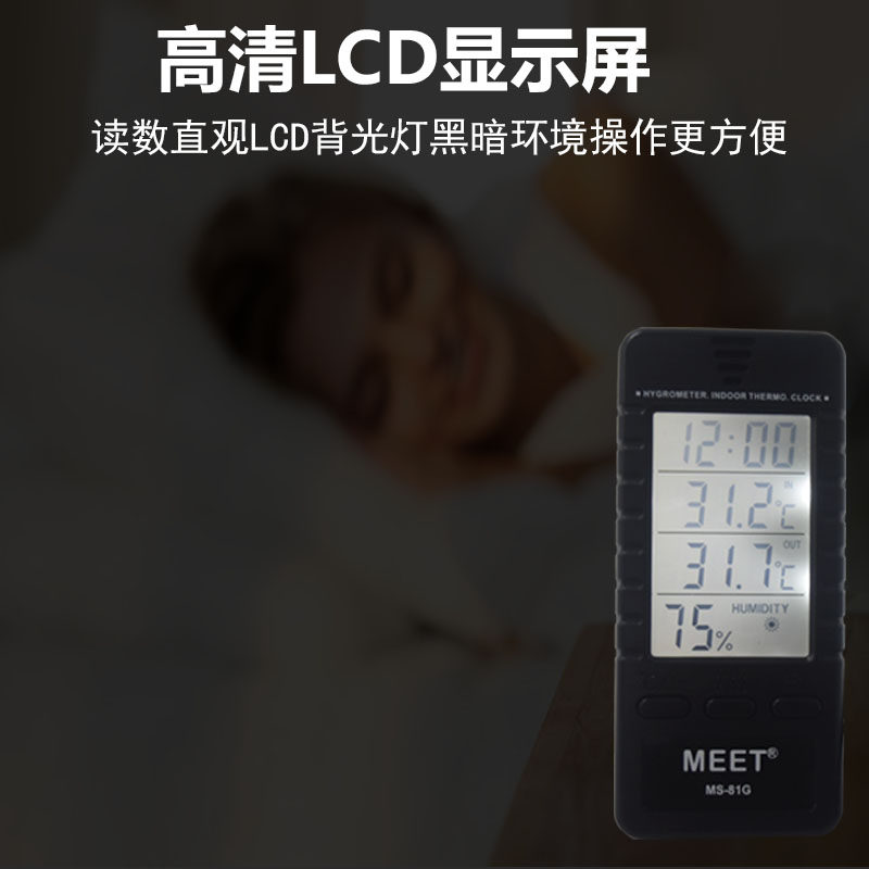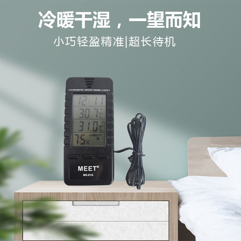 Meite temperature and humidity meter indoor and outdoor greenhouse laboratory household type high-quality simple one machine high-precision with clock table