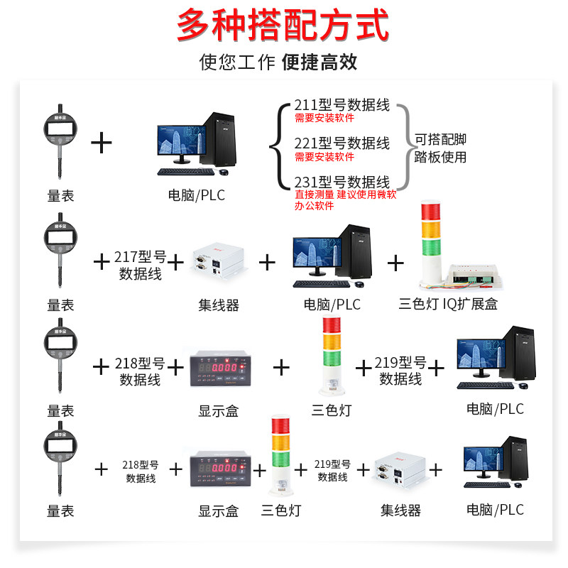 Digital display percentile micrometer head 0-1225MM0 001 Data line PLC computer electronic height gauge set