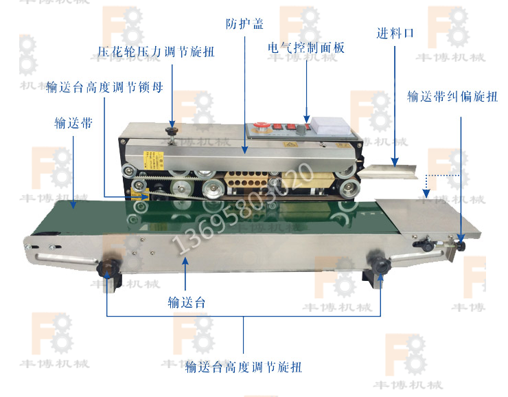 FR 770 sealing machine aluminum foil date character automatic film continuous sealing machine plastic bag food stainless steel