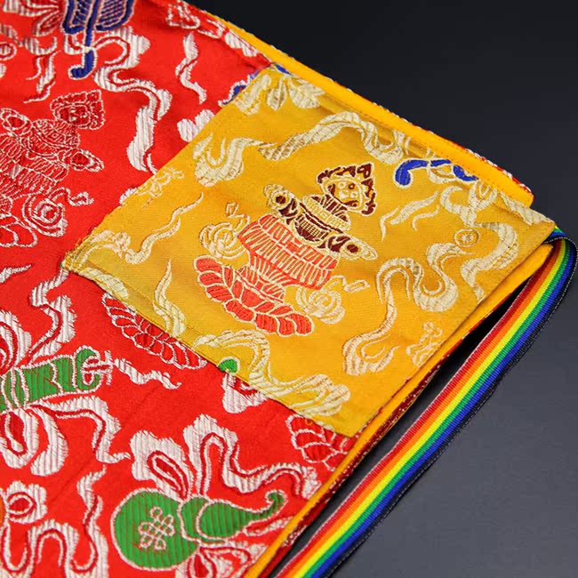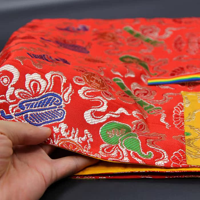 Eight Auspicious Weave Brocade Jacquard Pure Handmade Bag Warp Book bag Fabricium belt-red bottom inlaid yellow