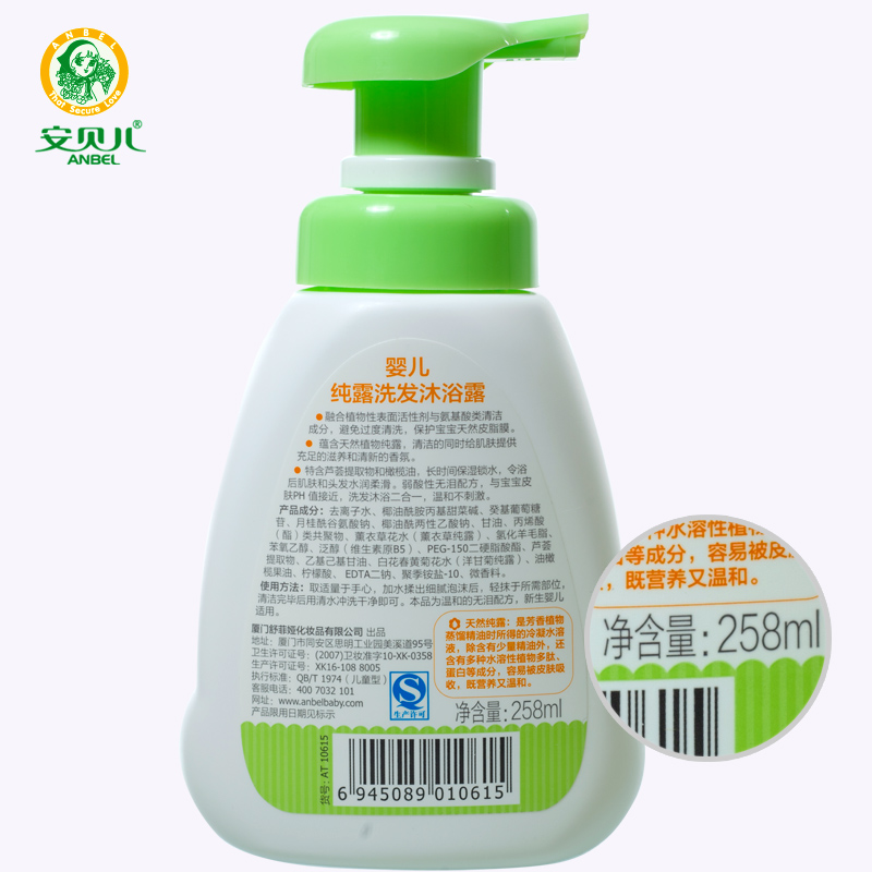 Anbeier baby shower gel 2-in-1 children's shampoo Shampoo Baby wash care moisturizing moisturizing type