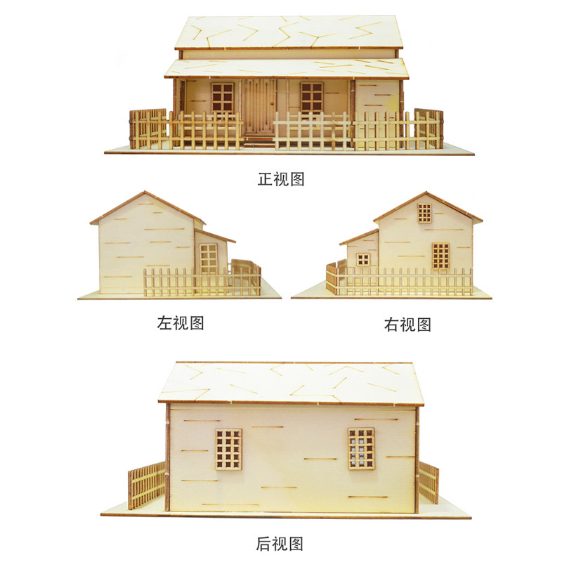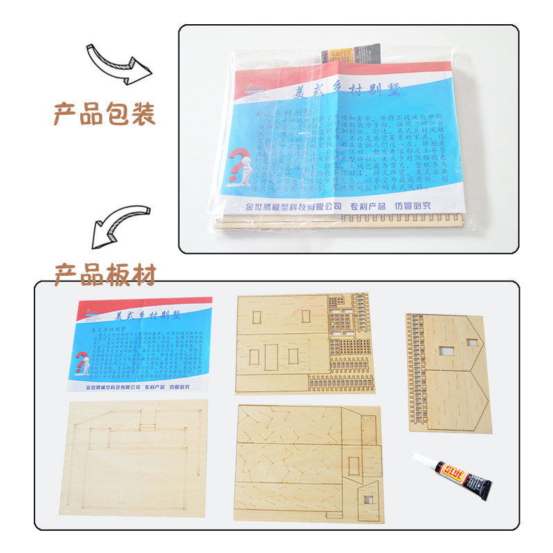 Wooden American country house building model children's handmade puzzle assembly kit can be painted and colored