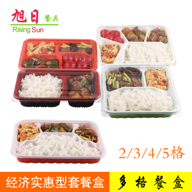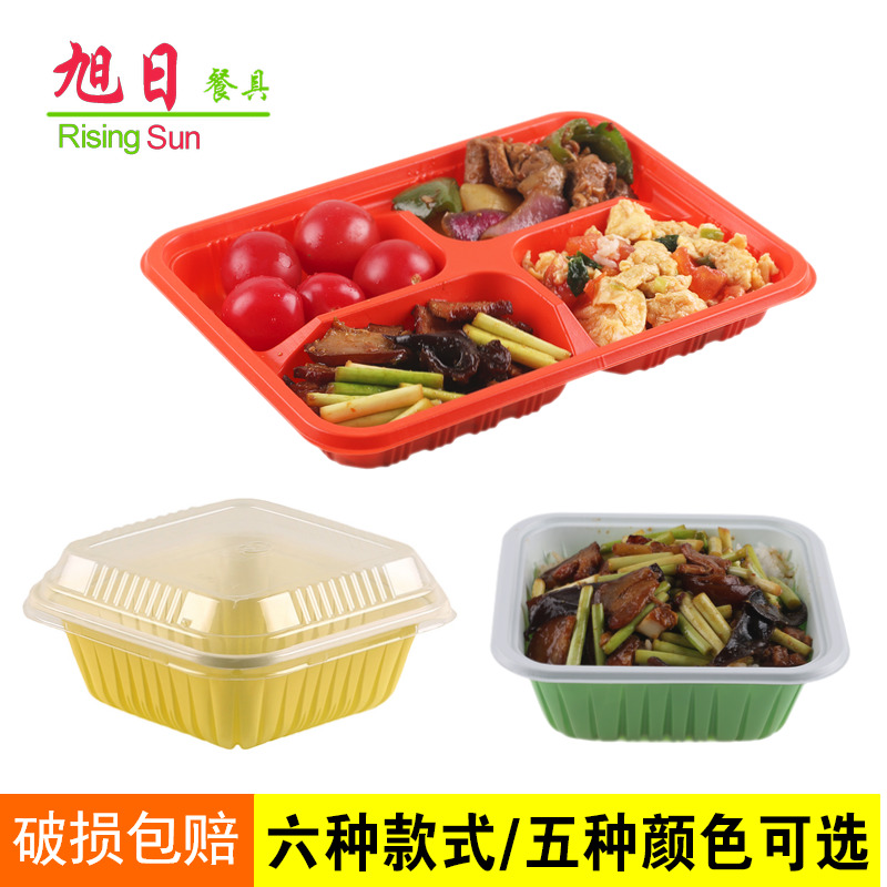 Disposable lunch box Lunch box Fast food box Rectangular lid pouring rice packing box Delivery box Three-grid lunch box grid