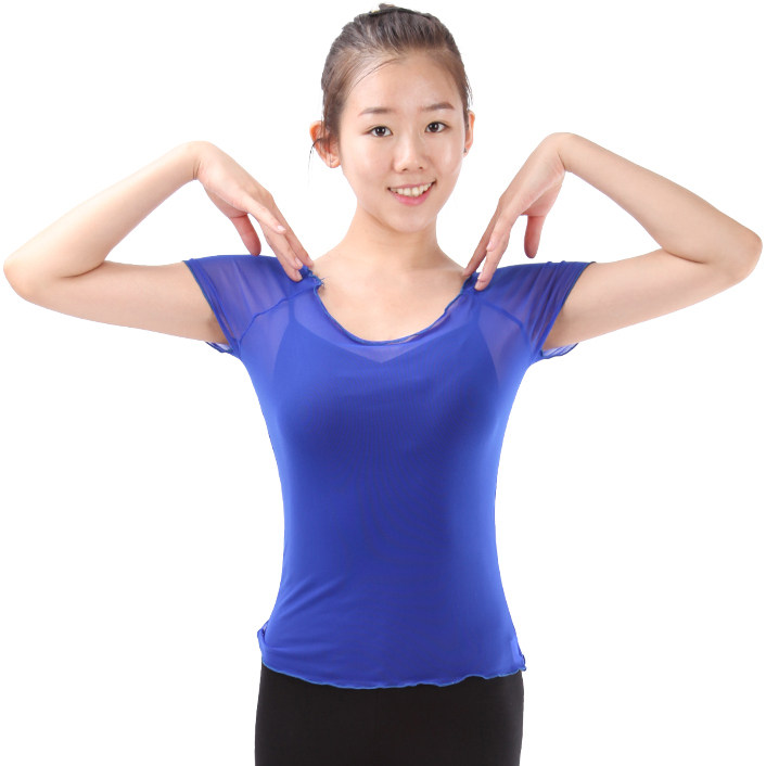 New yarn clothes Dansko dance clothes Women's summer thin section practice clothes blouse Ballet clothes elastic mesh short-sleeved top