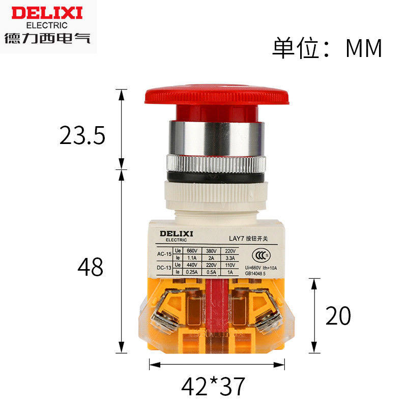 Delixi mushroom head emergency stop self-locking button switch LAY7-11ZS 01ZS emergency stop button 1 open 1 closed