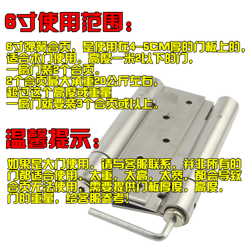 Free door 6 inch stainless steel spring hinge two-way inner and outer opening hinge 180 degree double elastic bar cowboy wooden door