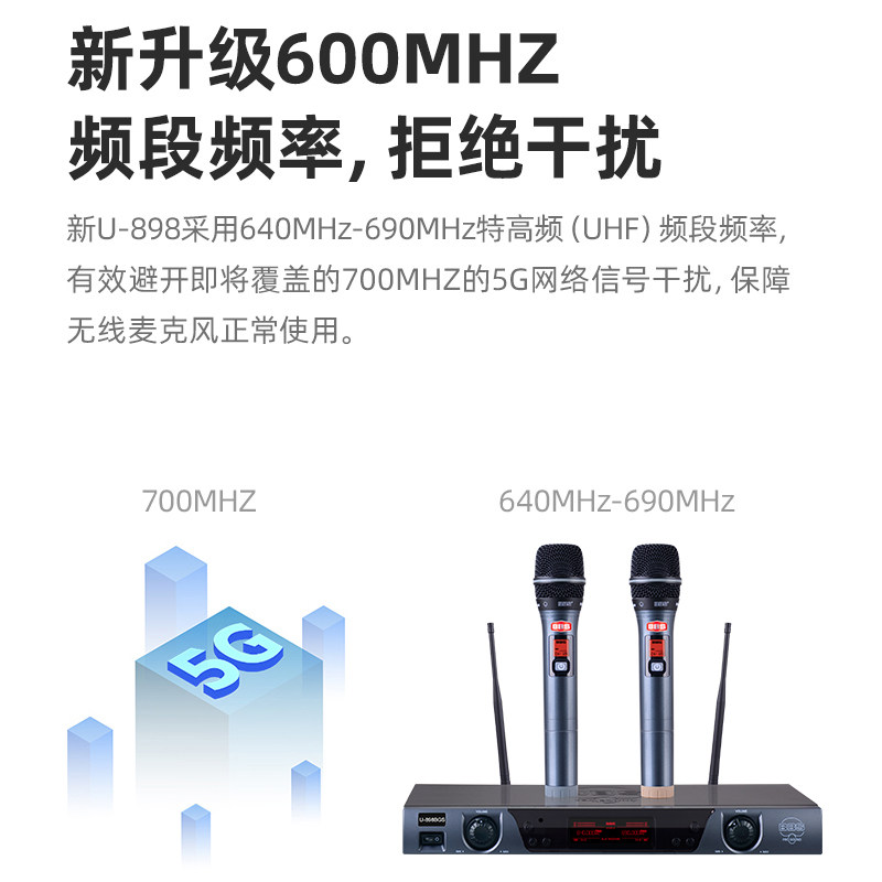 BBS wireless microphone one drag two microphone stage KTV special U section anti-acoustic called U-898 speech karaoke home