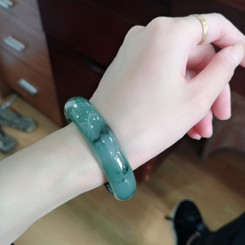 Natural old pit A goods jade bracelet oil Qingyang green floating flowers ice glutinous water good jade bracelet with certificate