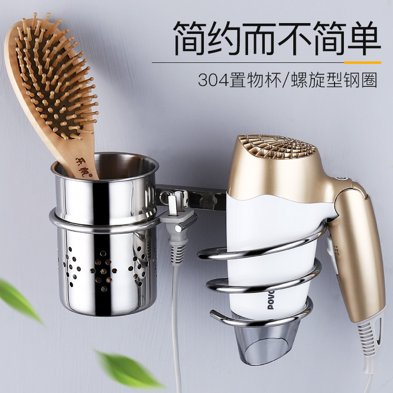 Punch-free Punched Dual-purpose-304 Hair Dryer Stand (without cups)