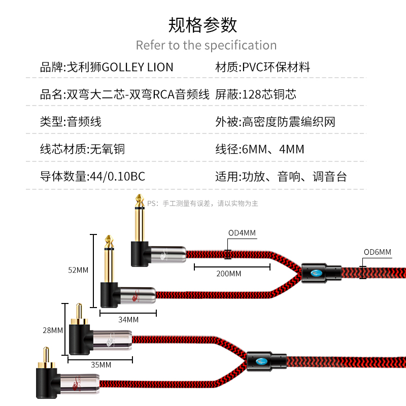 Fever 6 5 Large two transits RCA Audio Line Double Lotus RCA turn Double 6 35 Mixer power amplifier speaker connection line