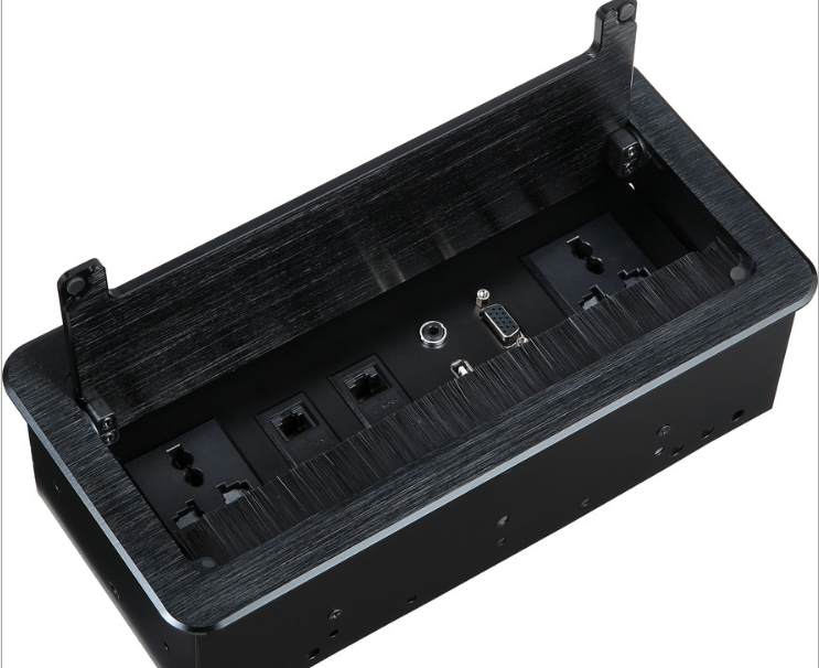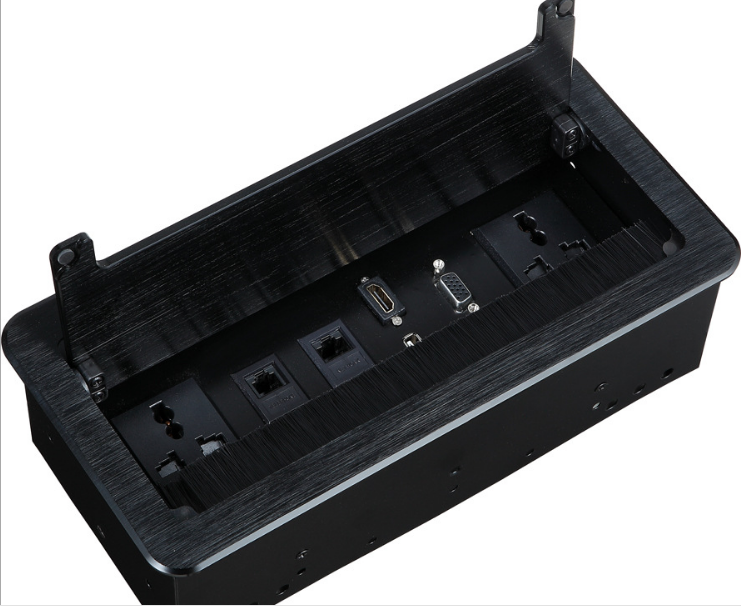 Multifunctional aluminum alloy panel hairbrush flip desk socket desktop socket multimedia wiring information box table surface integrated module