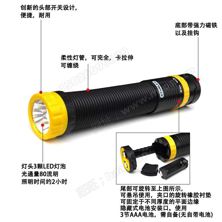 STANLEY STANLEY LED Flexible flashlight Retractable flashlight Curved light High brightness Serpentine light