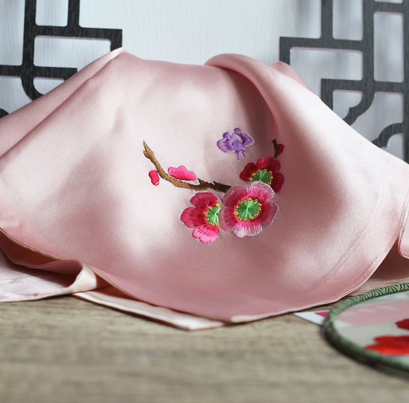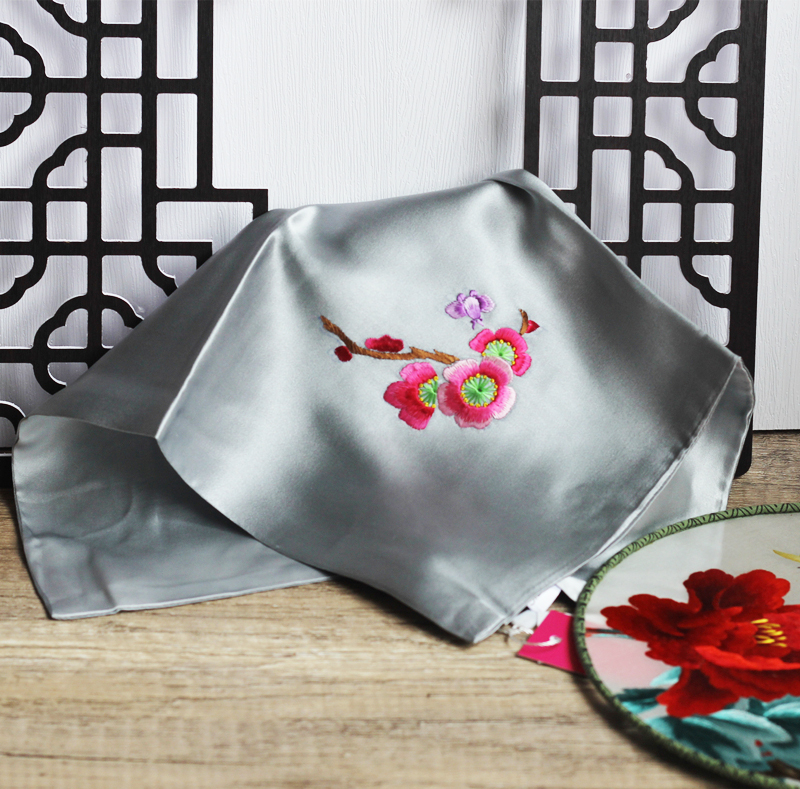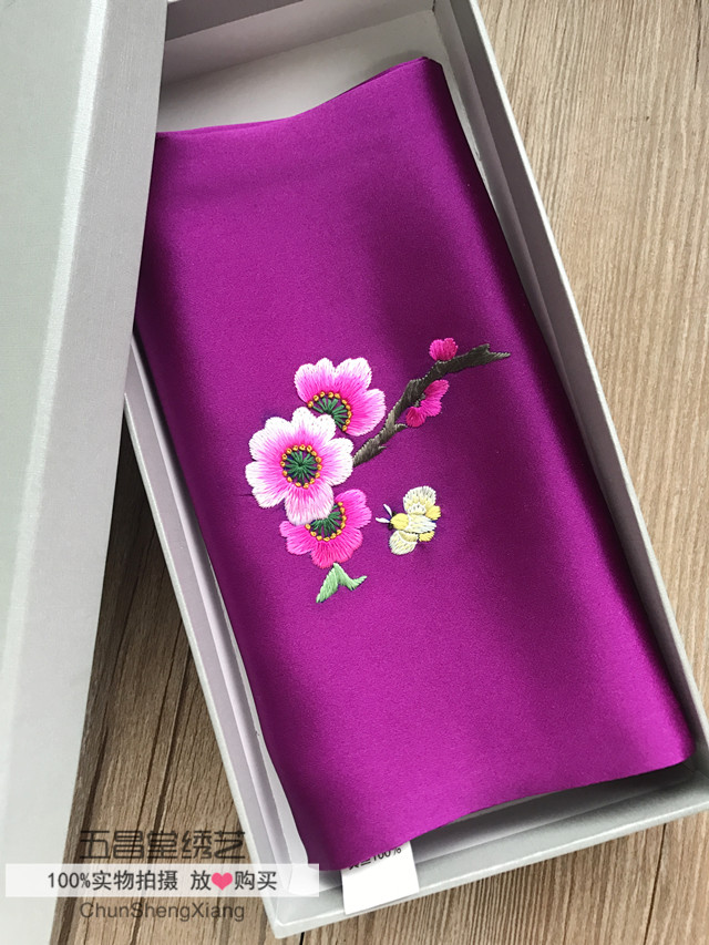 Spring Shengxiang Su embroidered Pappa 100% mulberry silk bifacial genuine silk-crepe satin hand embroidered handmade parquet