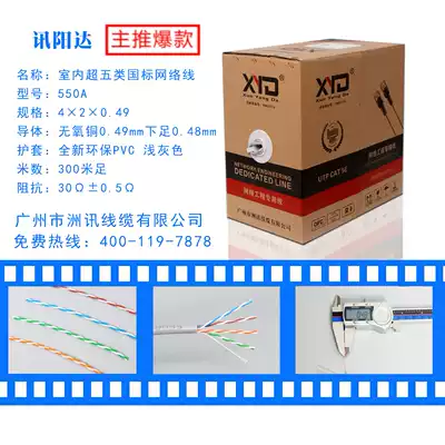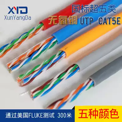 National standard super five network cable 0 5 pure oxygen-free copper 8-core 300 meters 100 boxes red, yellow, blue and gray monitoring engineering
