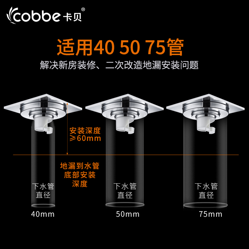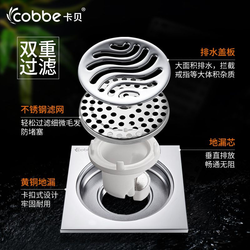Kabe large displacement floor drain Powder room Washing machine dual-use shower balcony Anti-odor anti-blocking anti-insect kitchen full copper cover