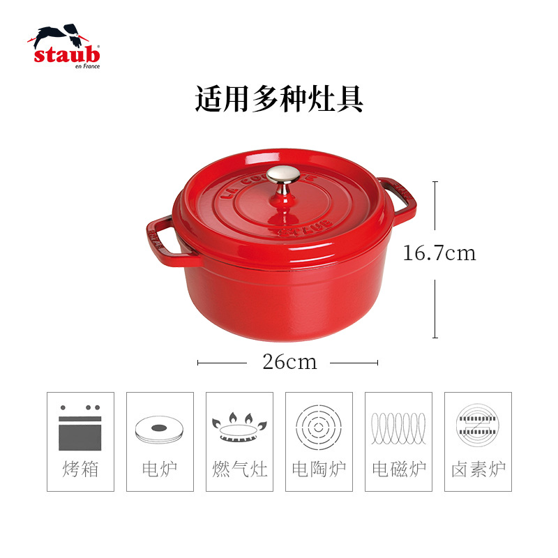 French imported staub Enamel 26cm enamel cast iron pot Household stew pot soup pot Special for gas induction cooker