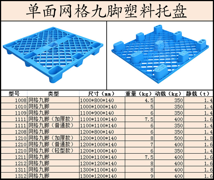 Grid nine-footed plastic pallet stacker pallet plastic pad pad warehouse board moisture-proof board warehouse pallet card board pallet