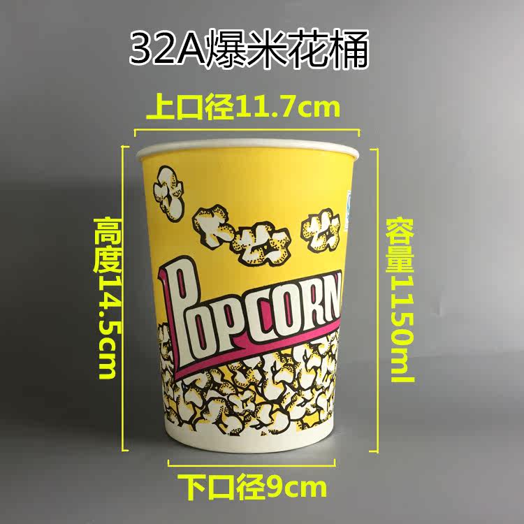 32A Disposable Popcorn Bucket 1200ml Popcorn Paper Cup 32oz Popcorn Paper Tube 500pcs