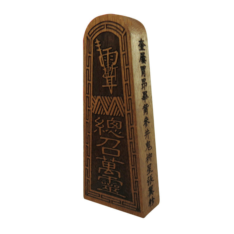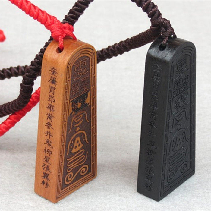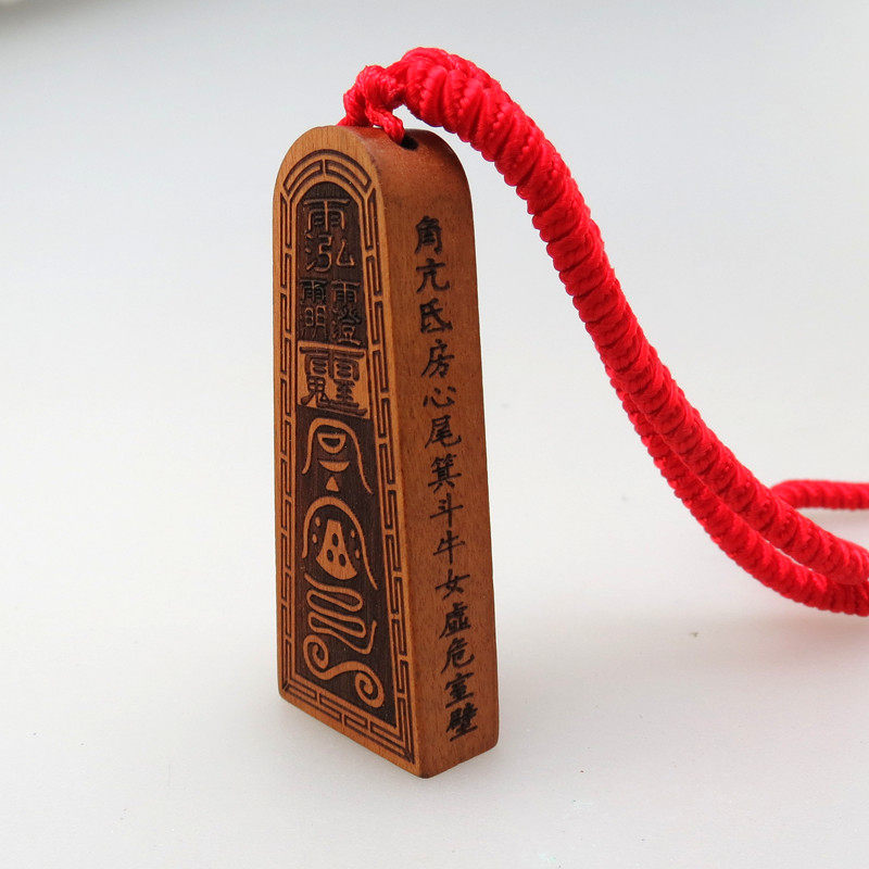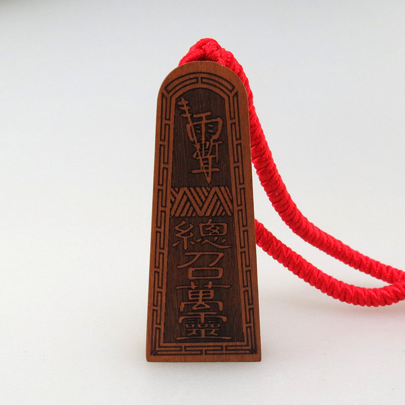 The Taoist wooden token crape myrtle taboo pendant above the bond with the five thunder orders printed with the safe black and yellow pendant decoration