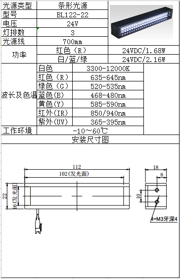 Machine vision LED light source Bar light source automated detection light source BL112-22