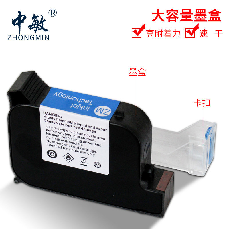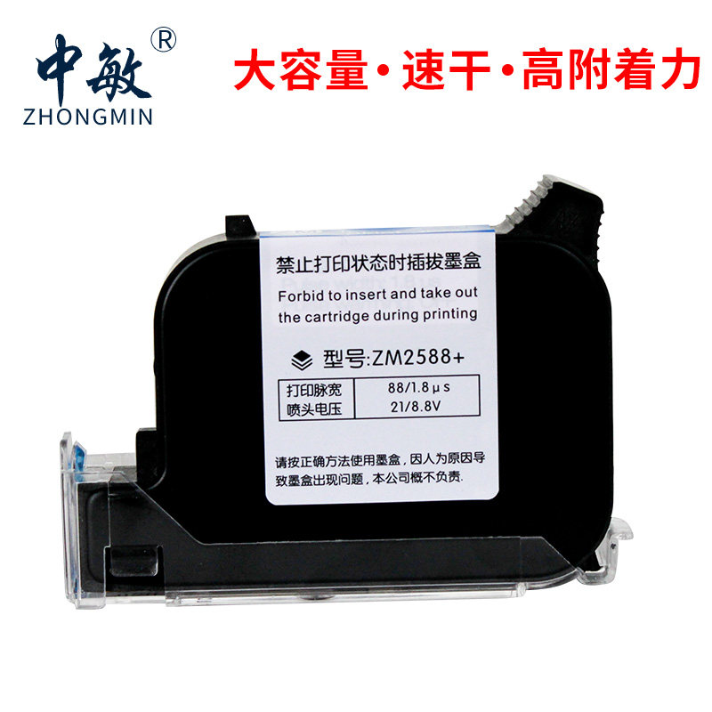 Zhongmin ZM2588 High adhesion handheld inkjet printer special quick-drying ink cartridge Original nozzle One-piece online handheld universal quick-drying ink cartridge
