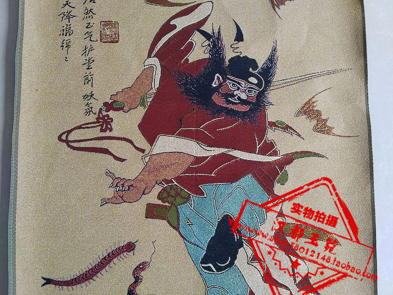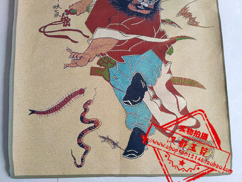 Ancient play Tibet Donka embroidery man objects painting gold silk brocade embroidery Zhong Kui hanging like a canvas strip figure murals