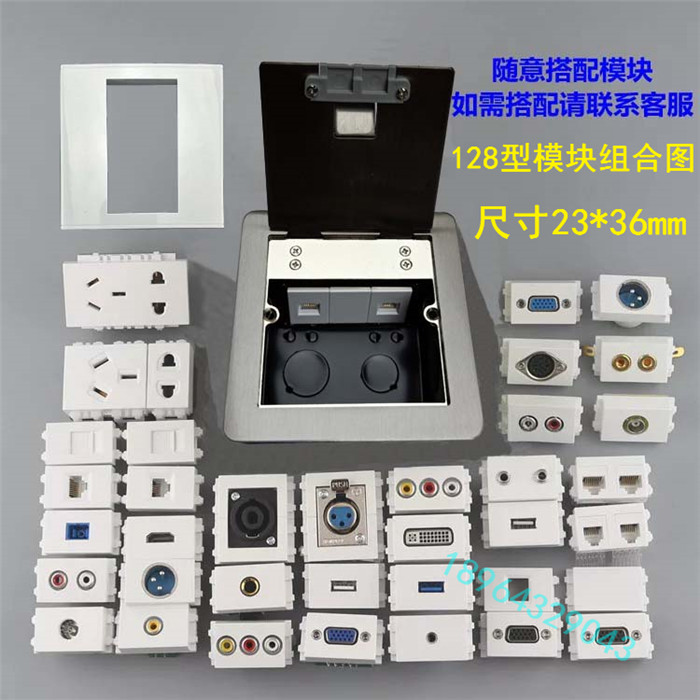 Type 128 power supply three-phase four-wire 16A four holes Phosphorus Copper Distribution Ground Socket Wall Socket module Dimensions 46 * 36mm