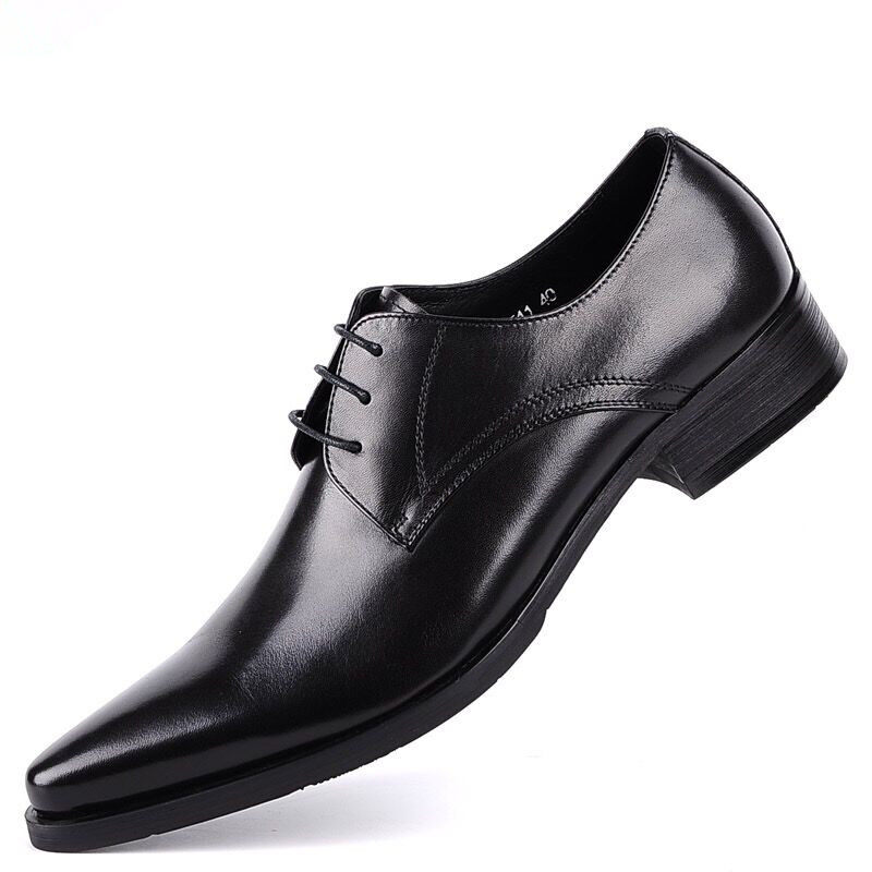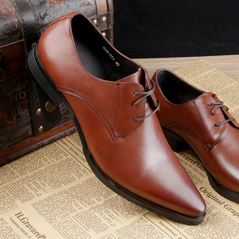 European version leather shoes men's waxed lace-up leather business formal wear British white-collar office tb wedding shoes throwing pointed head Milan - Taobao