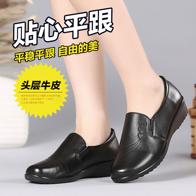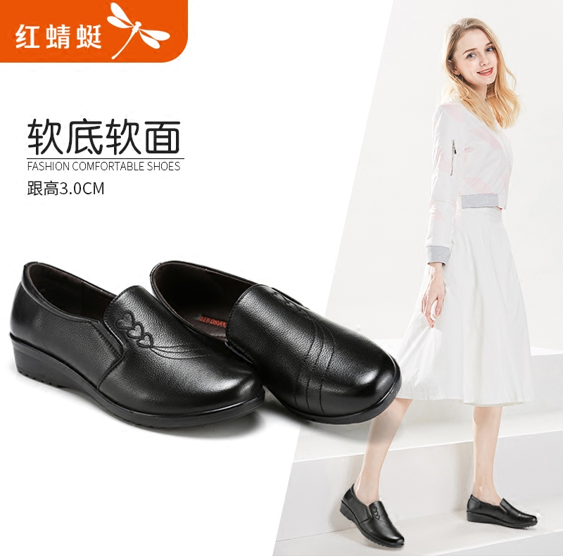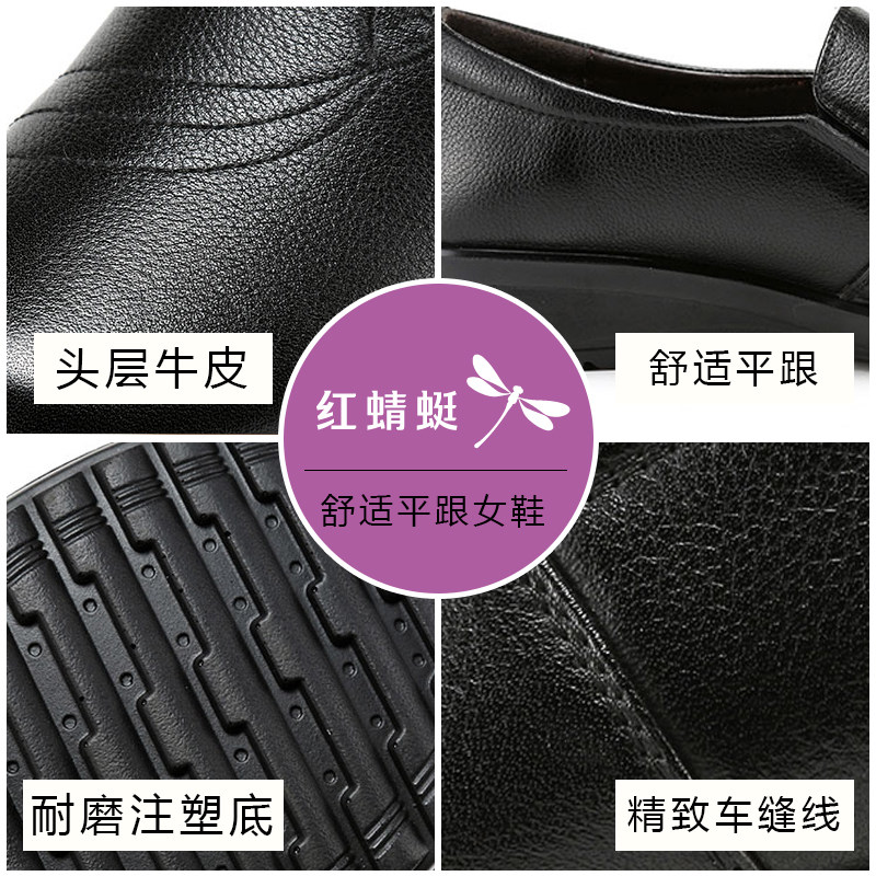 Red Dragonfly Genuine Leather Middle Aged Leather Shoes Girl Soft Bottom Comfort Mom Shoes Flat Bottom Elderly Woman Shoes Soft Leather Grandma Single Shoes