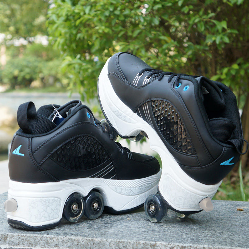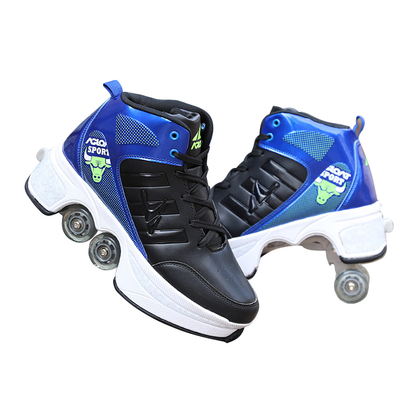 Adult Storm Shoeshoe Four Wheels Double Row Dual-Purpose Deformed Shoes Anglut Children Dry Skates Roller Skates Men's Wheel Skating Shoes