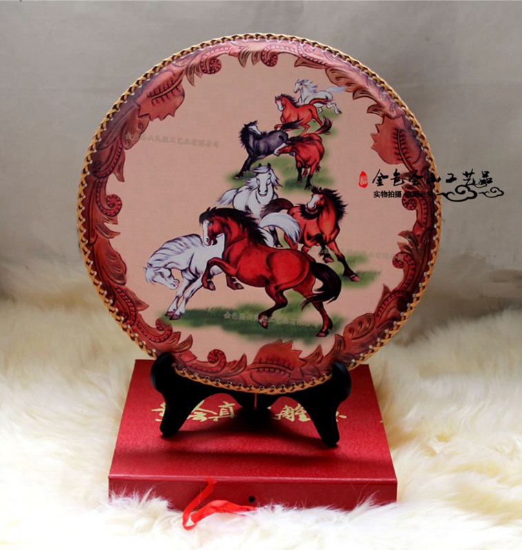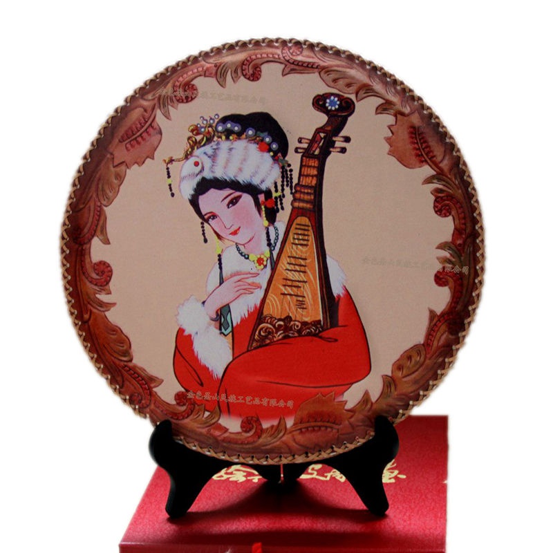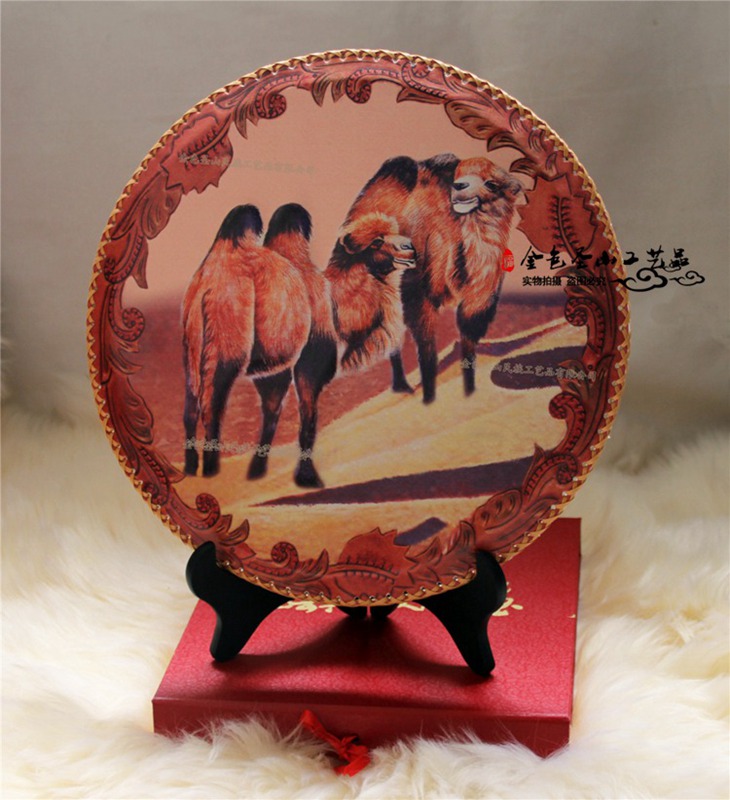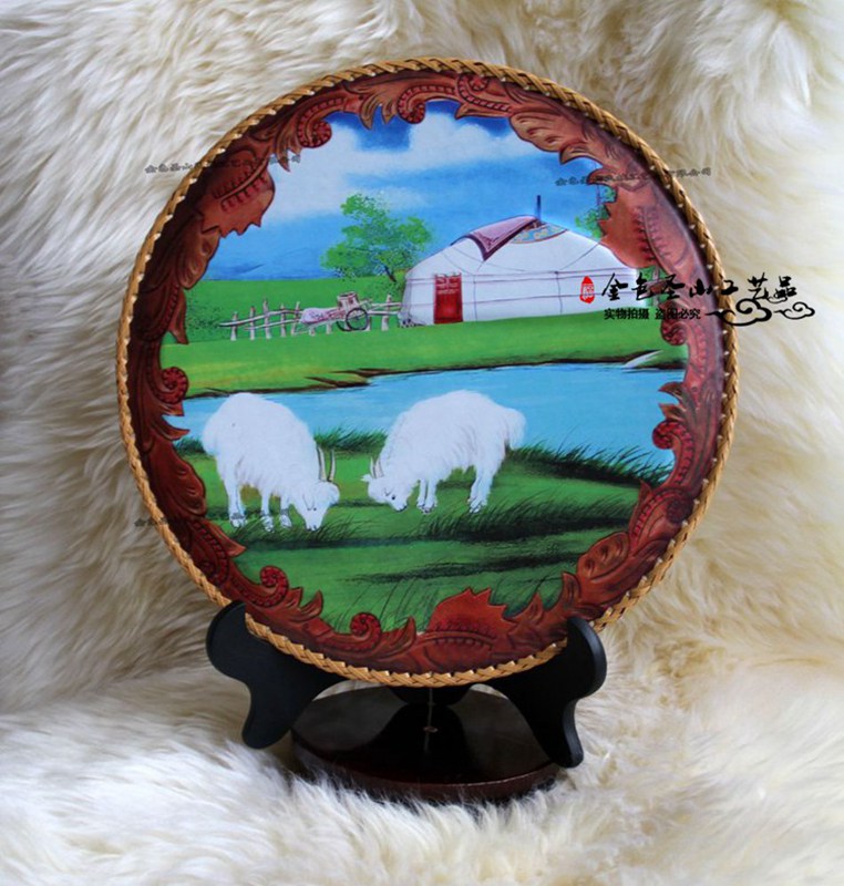 Inner Mongolia crafts Mongolian leather painting grassland love circular table plate Mongolian elements yurt restaurant decorative painting